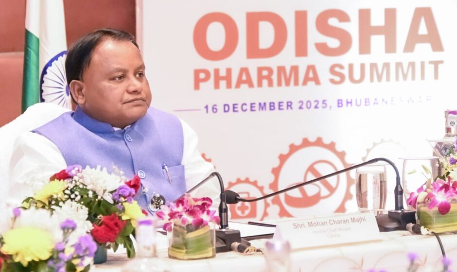 Chief Minister Shri Mohan Charan Majhi in discussion with leading pharma industry leaders during the Odisha Pharma Summit at Taj Vivanta Bhubaneswar.