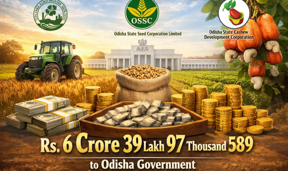 Odisha Agro-Industries Corporation, Odisha State Seed Corporation Limited and Odisha State Cashew Development Corporation have paid a total dividend of Rs. 6 crore 39 lakh 97 thousand 589 to the Odisha Government